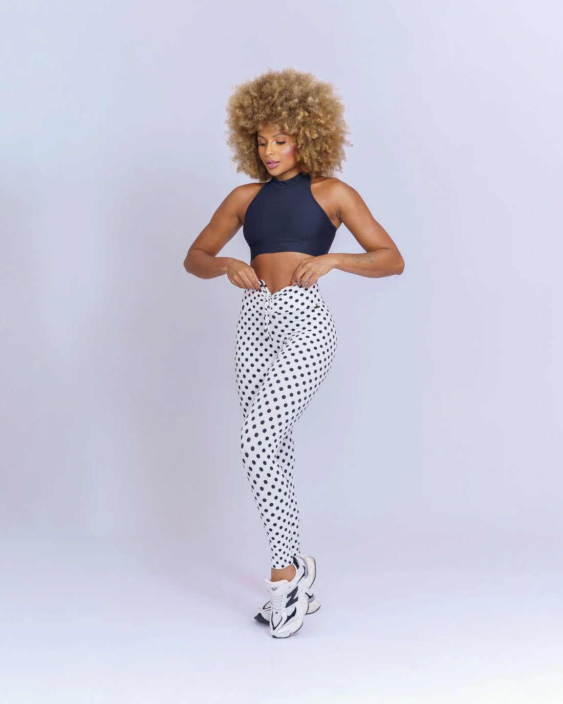 Calça Legging fitness Slim Branca com poá preta empina bumbum
