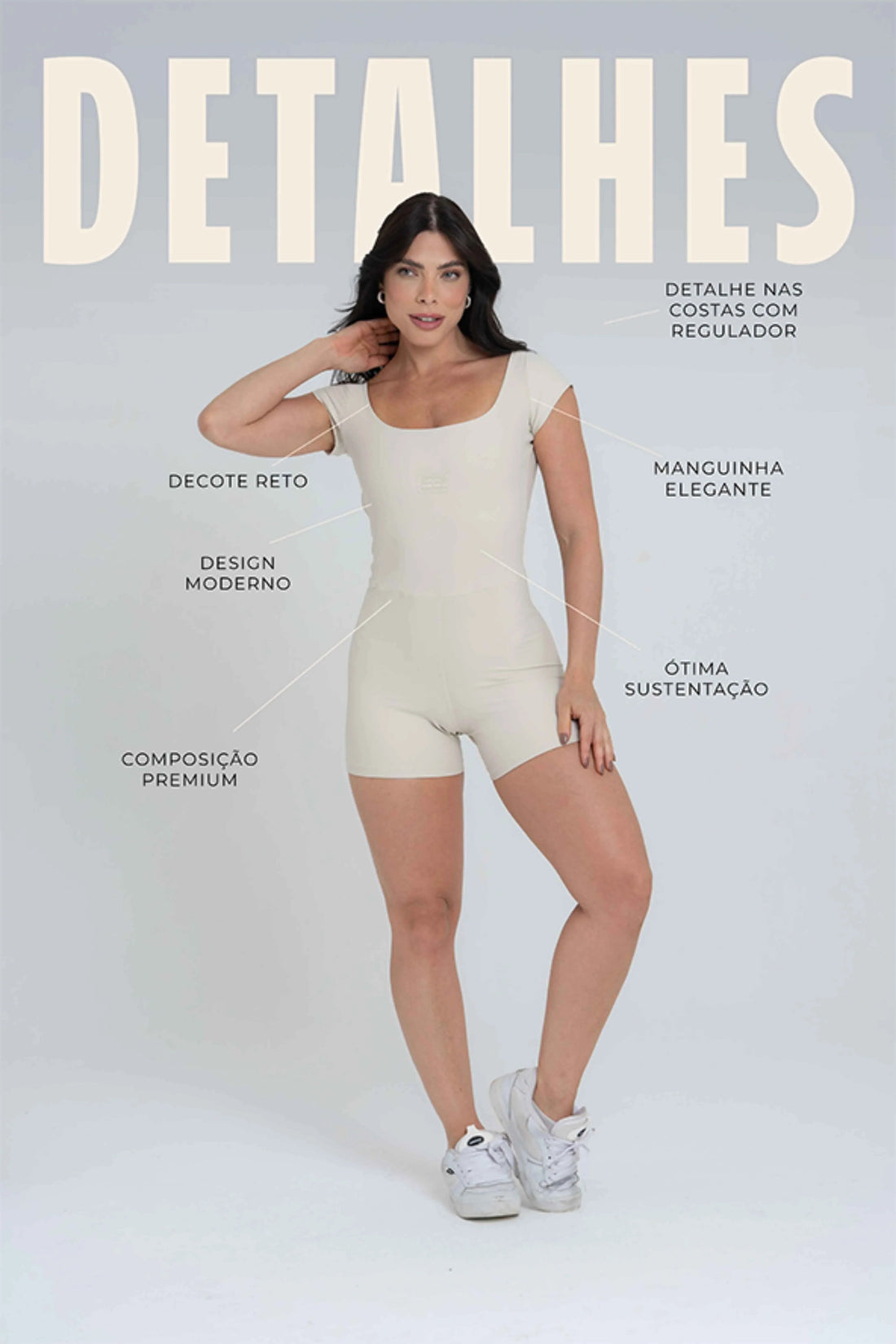 Macaquinho Fitness new Pérola Super Black e viés Off White empina bumbum