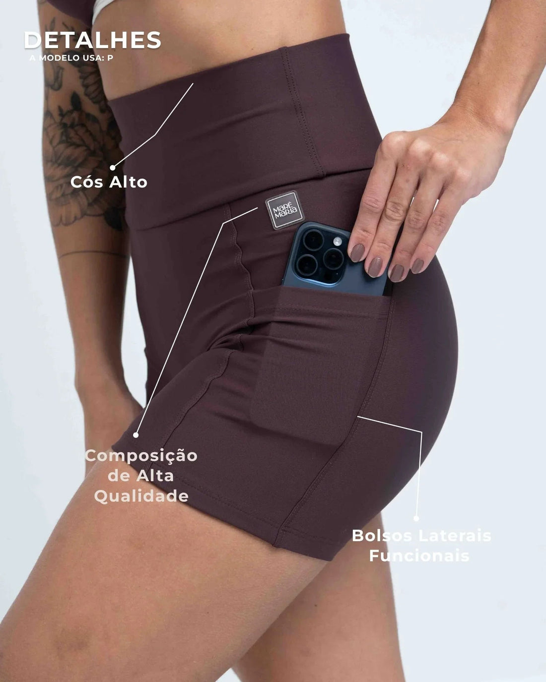 Short fitness Bike Chocolate Dark compressão S/empina