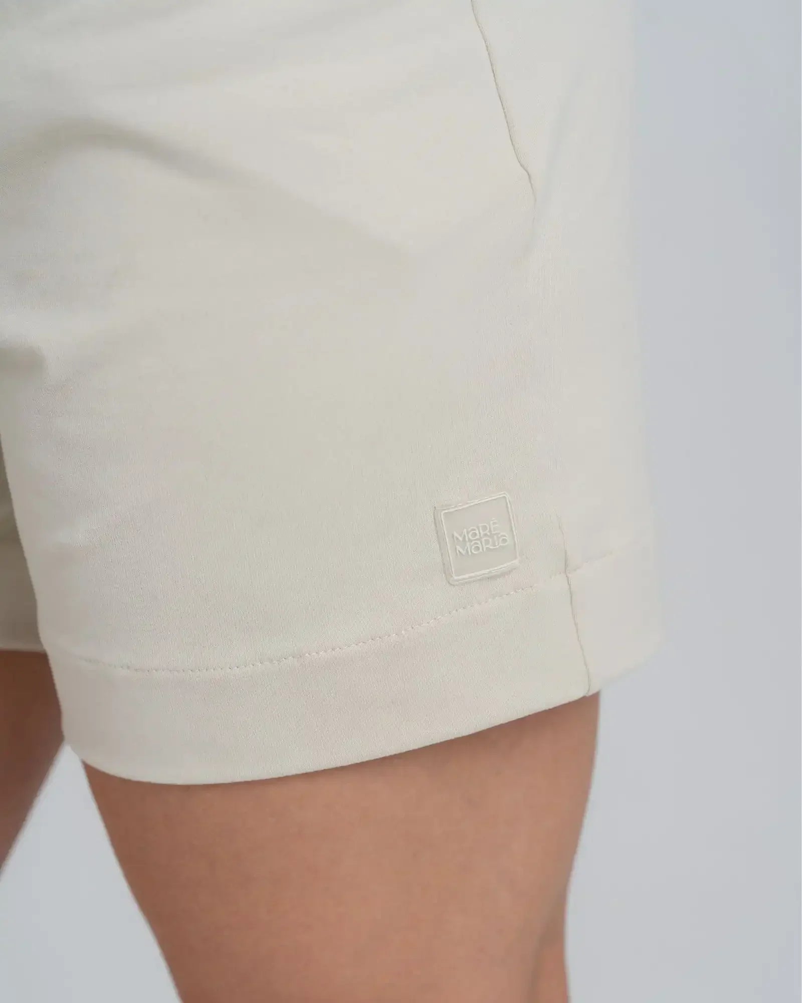 Modelo: Bermuda de cintura alta, com elástico e bolsos laterais