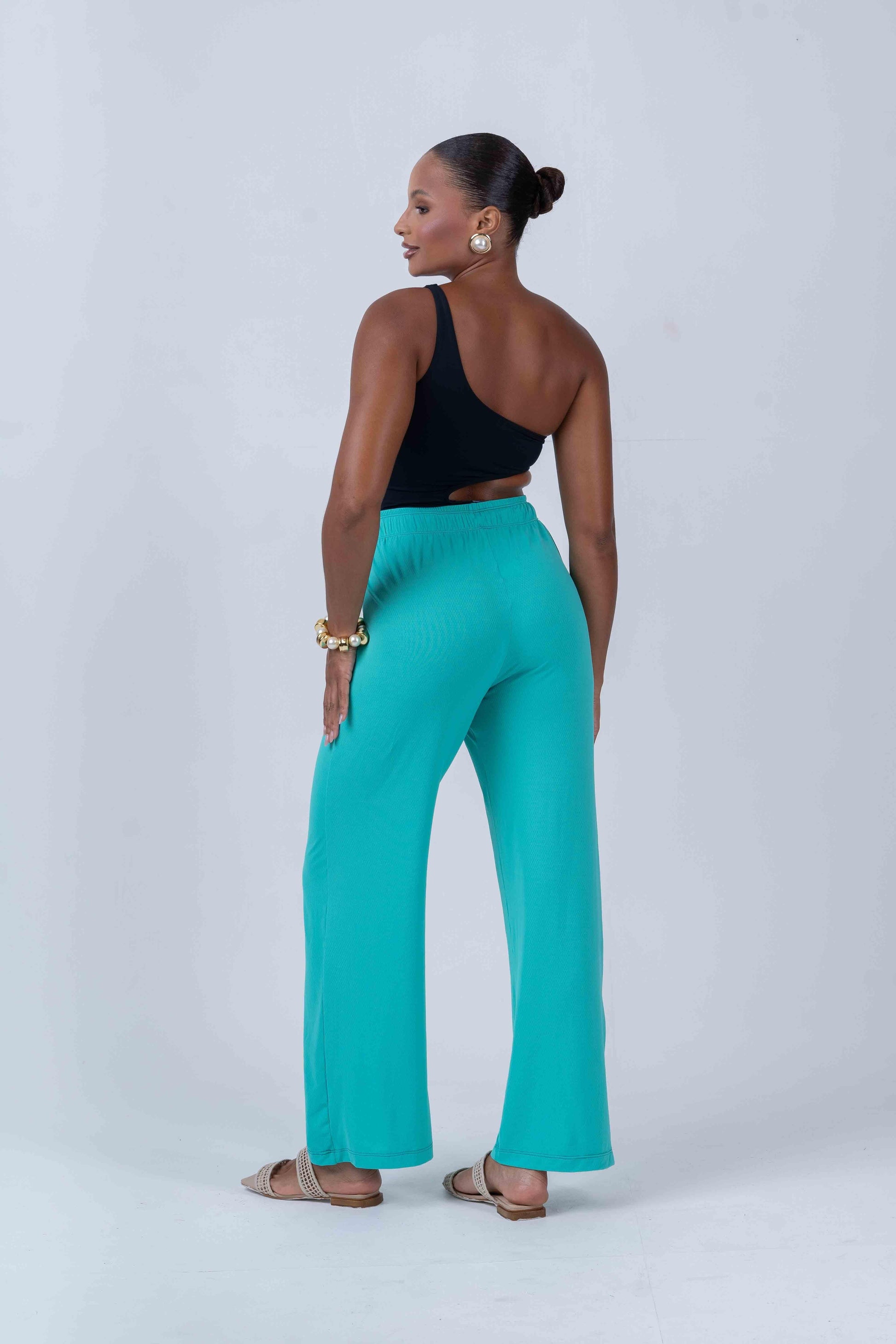 Com a Calça Pantalona Beach Verde Piscina, você garante um visual sofisticado, leve e confortável para aproveitar o melhor do verão, seja na praia, piscina ou em momentos de lazer.