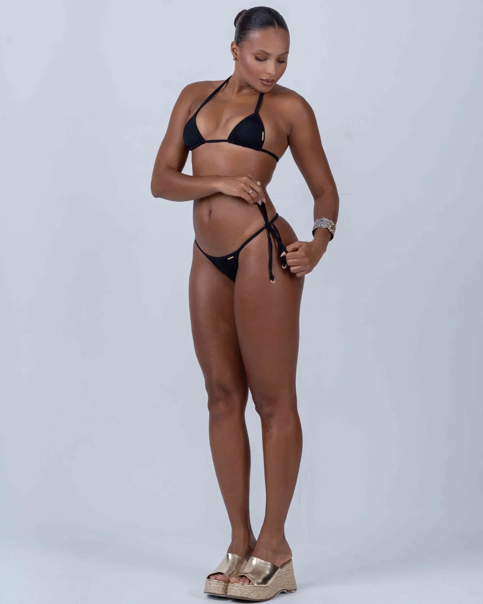 A Calcinha Cortininha de Lacinho Preto é a peça ideal para quem busca um biquíni clássico, ajustável e sofisticado. Com amarrações laterais que proporcionam um ajuste personalizado, esse modelo destaca as curvas com muito conforto e elegância.