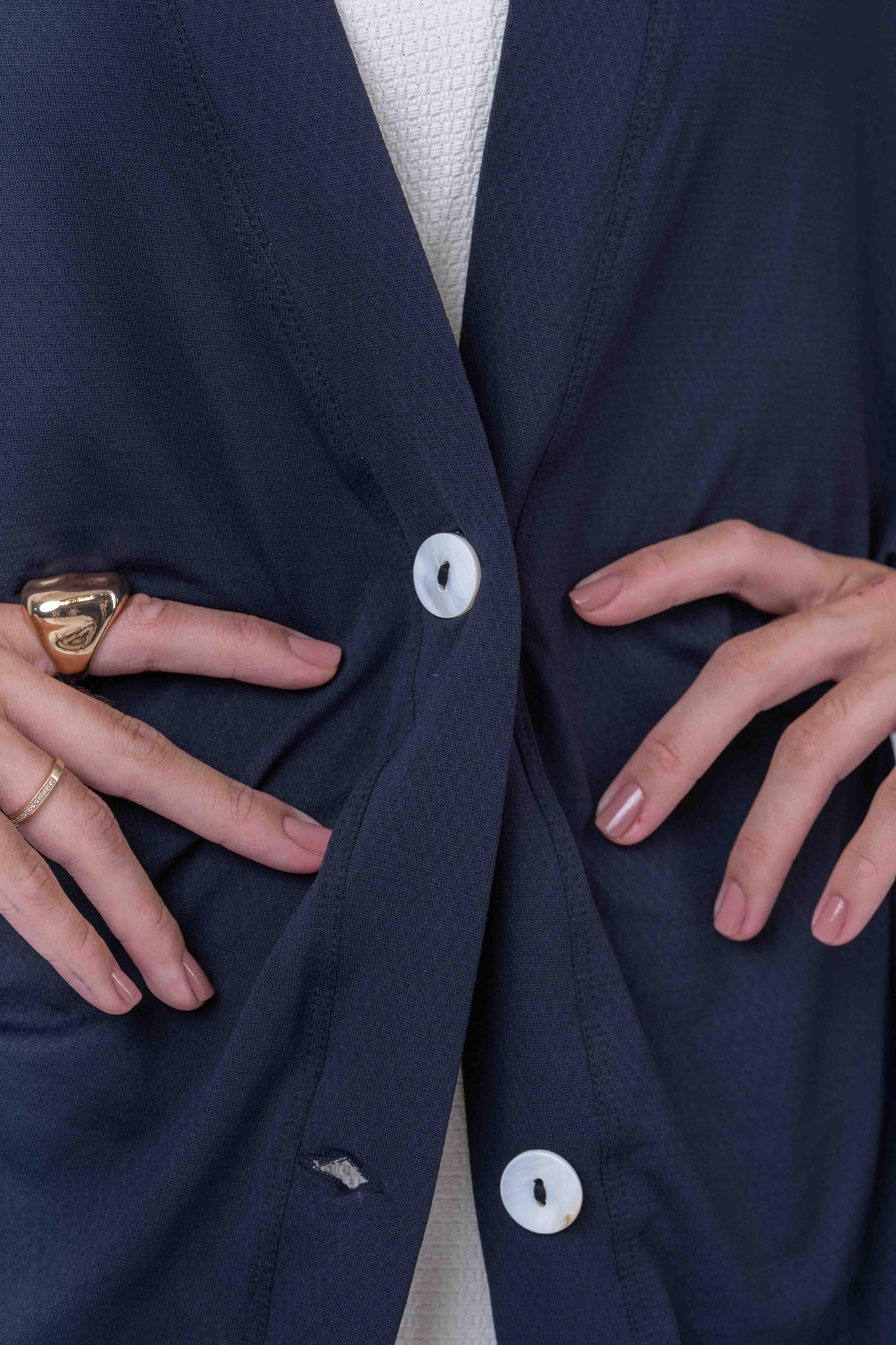 - Botões Frontais: Detalhe funcional e elegante, garantindo versatilidade na hora de vestir.