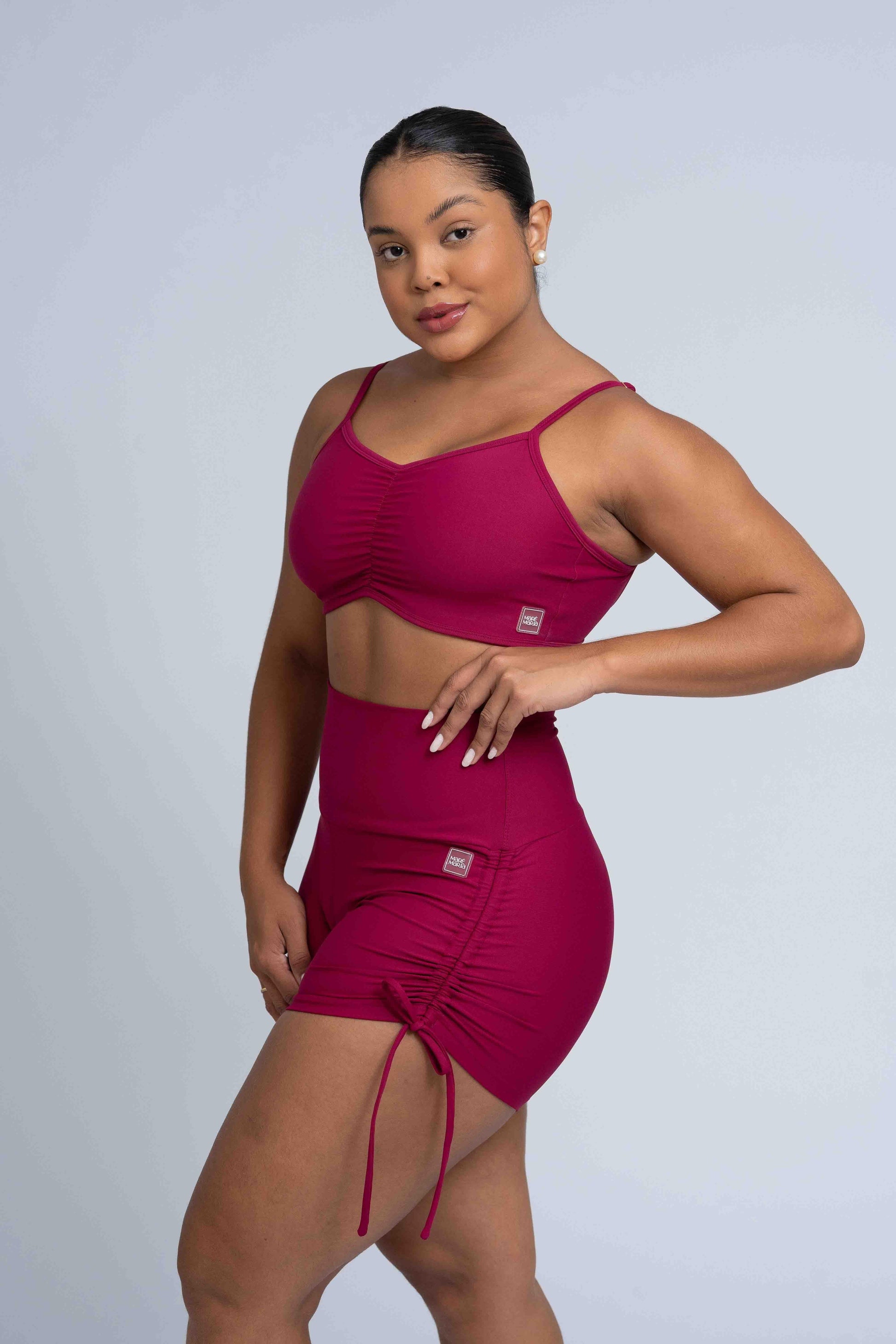 ✔ Laços Laterais Ajustáveis: Permitem ajustar o comprimento do short conforme sua preferência, oferecendo conforto personalizado.