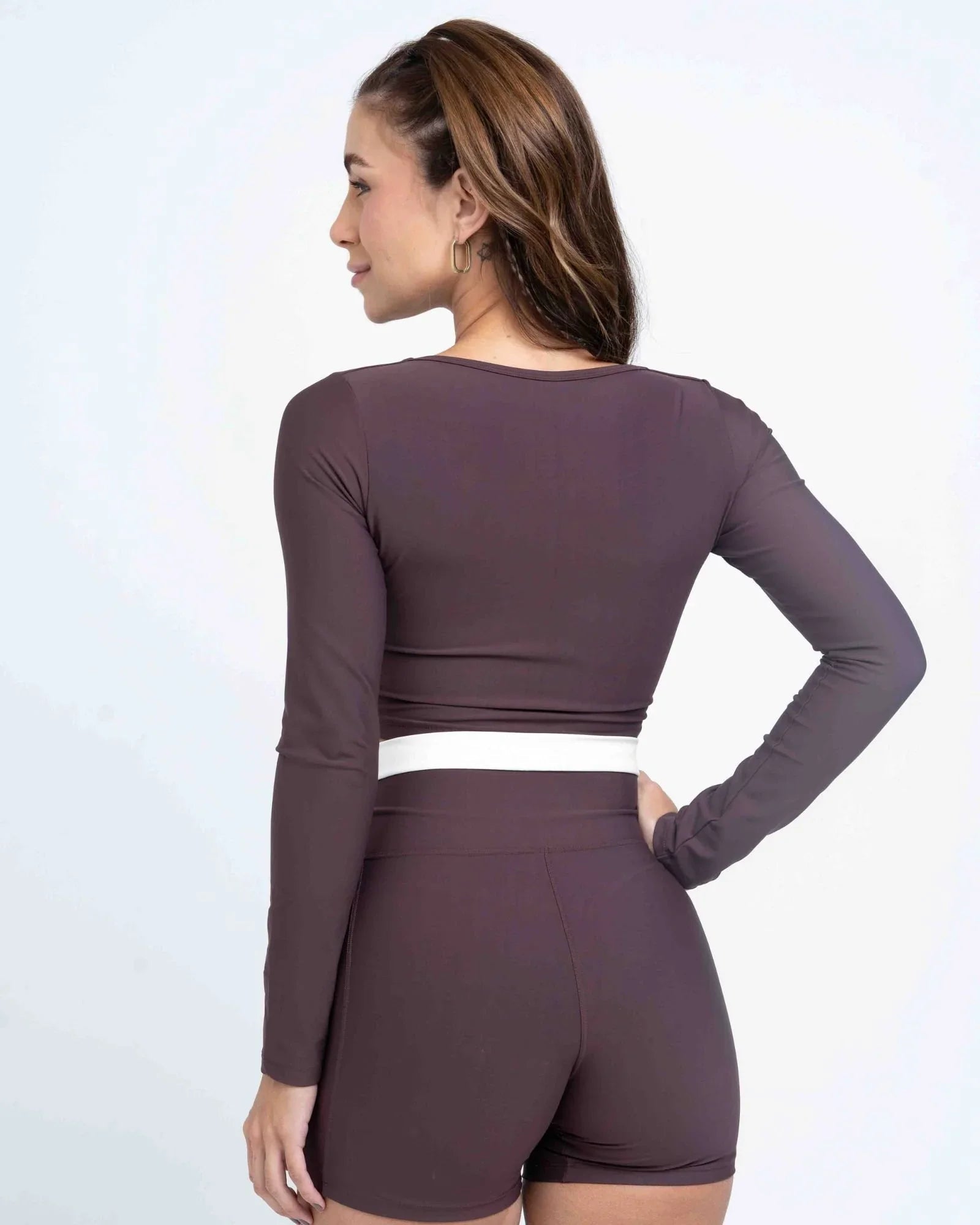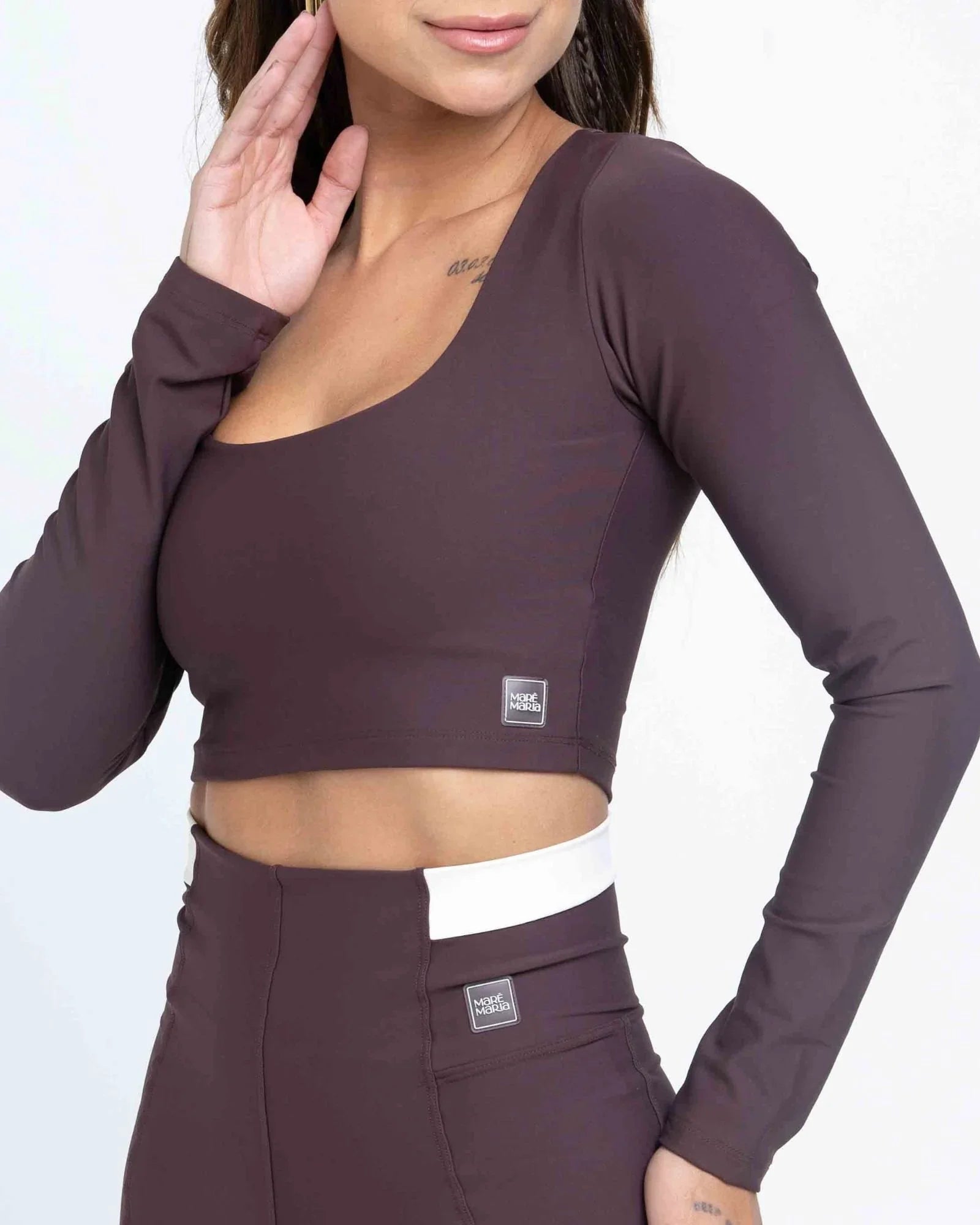Top Fitness Classic Manga Longa Marrom Ébano – Maré Maria