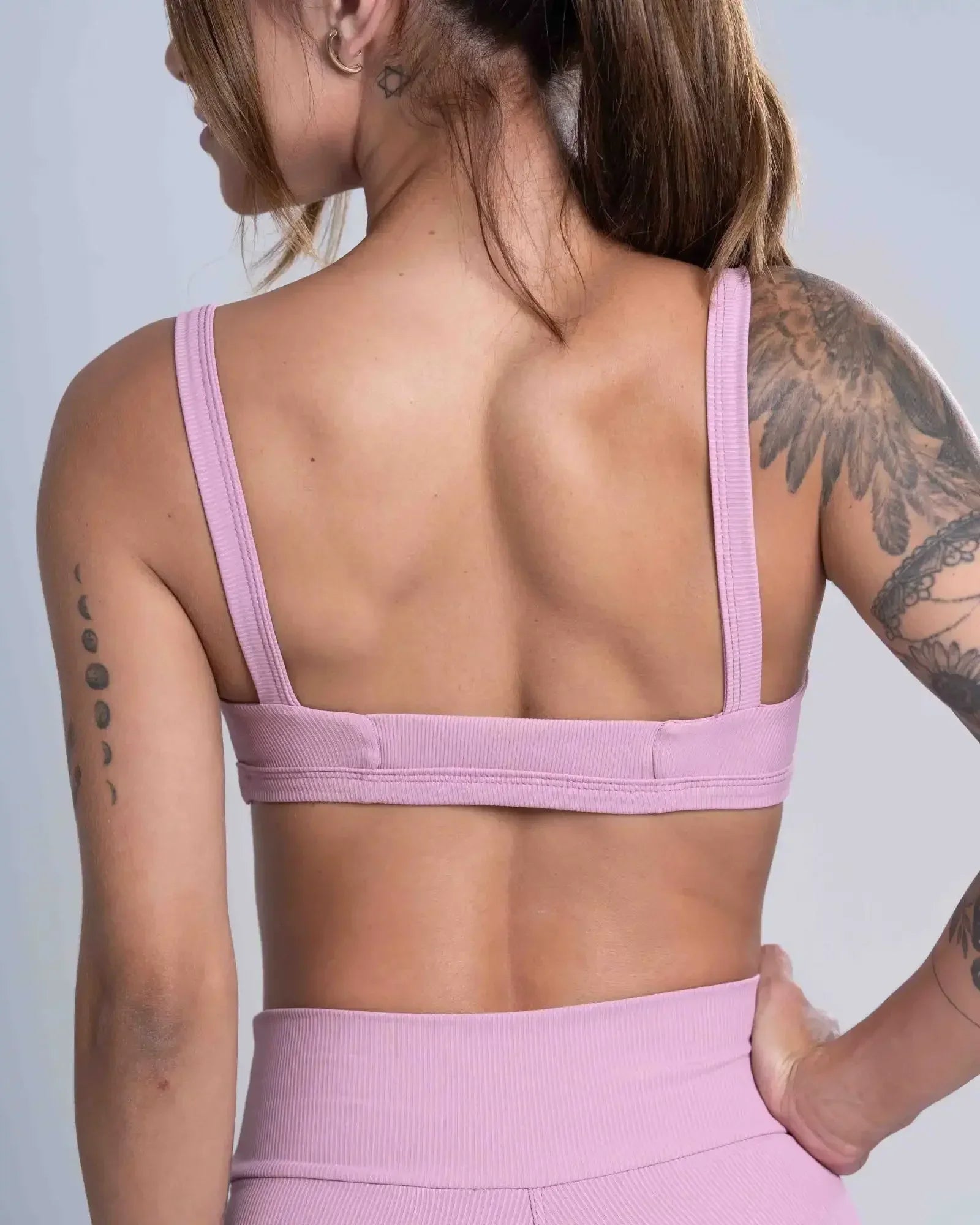 O Top Fitness Flow é a escolha ideal para quem busca equilíbrio entre sustentação, liberdade de movimento e um visual moderno e delicado. Seu design com recorte central anatômico valoriza o busto, tecido canelado, enquanto as alças finas garantem conforto e leveza, seja durante treinos intensos ou em composições esportivas casuais.